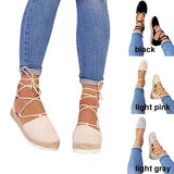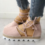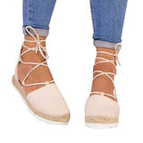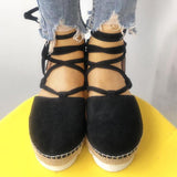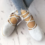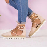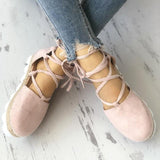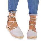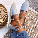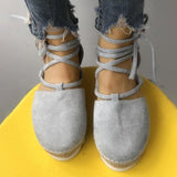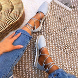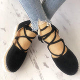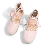 Solid Color Lace-Up Hollow Ankle Strap Flats